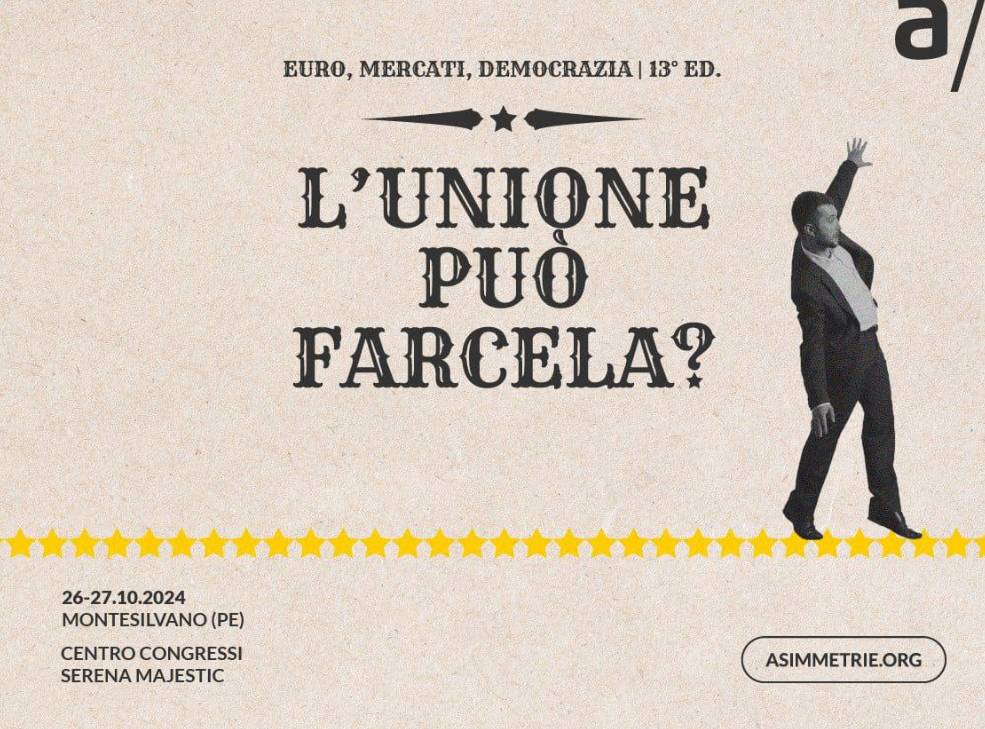Tredicesima edizione della Conferenza annuale dell’Associazione A/Simmetrie, al Serena Majestic di Montesilvano, sul tema “Euro, mercati, democrazia 2024 – L’Unione può farcela?”.