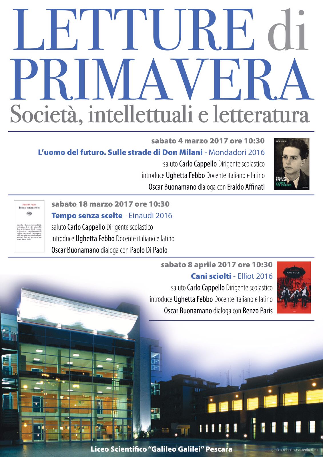 Pescara, Letture di Primavera al Liceo Galilei. Tre giorni dedicati alla lettura ed all’approfondimento critico con gli autori dei testi grazie all’iniziativa Letture di Primavera, Società, intellettuali e letteratura, in programma al Liceo Scientifico G. Galilei di Pescara.