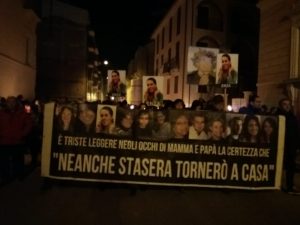 “È triste leggere negli occhi di mamma e papà la certezza: neanche stasera tornerà a casa”. Hanno sfilato tra fiaccole e lacrime. I loro volti impressi su gigantografie. I loro nomi scritti in ordine alfabetico su un grande lenzuolo. Sono tanti, troppi, i giovani morti la notte del 6 aprile 2009.