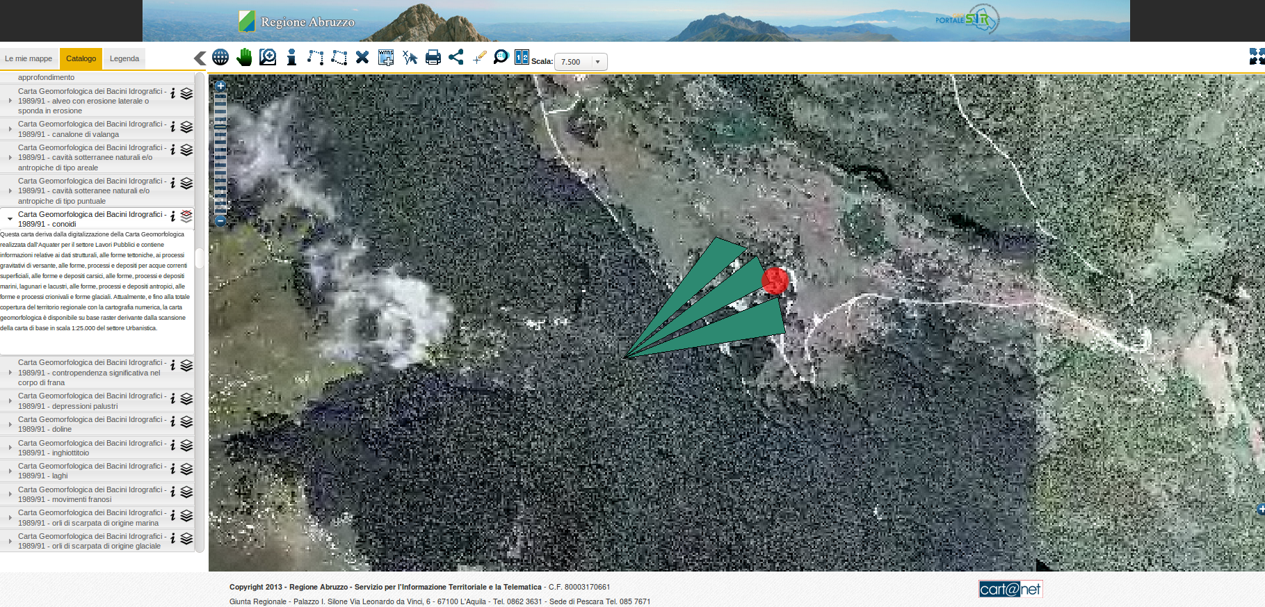Le due carte ufficiali mostrano inequivocabilmente che l’hotel Rigopiano è costruito al centro di un’area con colate detritiche, dette conoidi. Sorge, cioè, su un’area rialzata formata proprio dai detriti che arrivano giù dal canalone a monte dell’albergo.