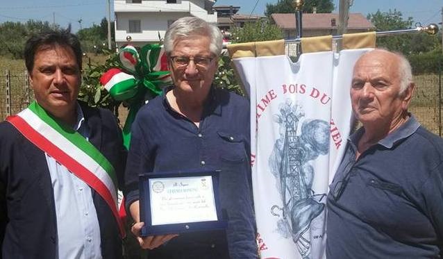 La cerimonia di consegna si è tenuta a Lettomanoppello nel corso della manifestazione in ricordo della tragedia dell’8 agosto 1956. Presenti Nino Di Pietrantonio dall’Associazione “Minatori vittime del Bois du Cazier”, il Presidente della Provincia di Pescara Antonio Di Marco, il Sindaco di Lettomanoppello Giuseppe Esposito, il Sindaco di Serramonacesca Franco Enrico Marinelli e il Sindaco di Castelvecchio Subequo Pietro Salutari.