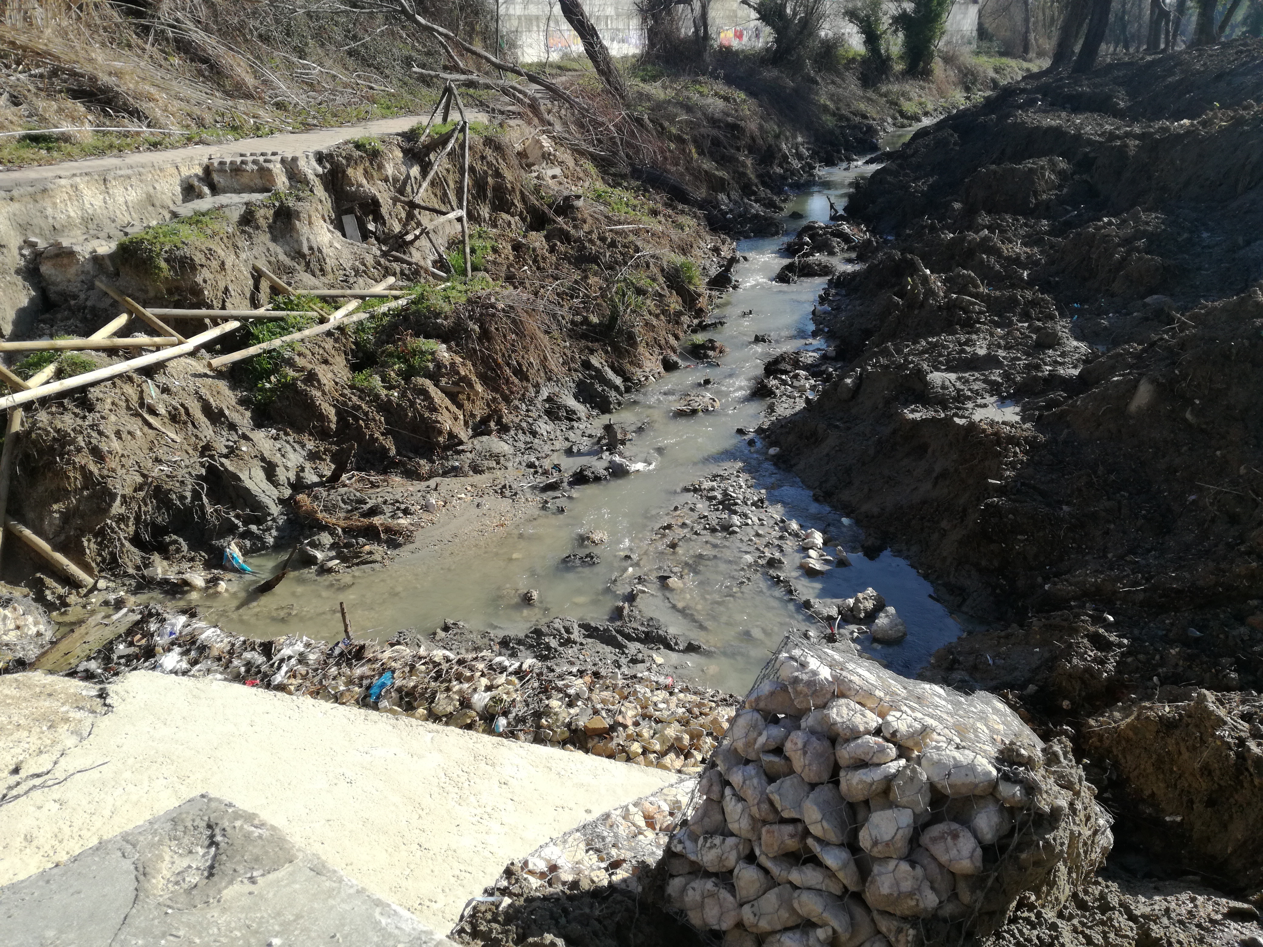 Distrutta anche la staccionata in legno. Lo smottamento ha provocato il cedimento delle gabbie in pietra e ferro che dovevano ancorare le pareti in argilla del corso d’acqua. Ora spetterà ai tecnici del Genio Civile ripristinare e riqualificare l’intera zona. Fortunatamente ha sottolineato ancora Del Vecchio, il ponte in legno inaugurato alcuni mesi fa non ha subito danni. La zona è stata transennata per motivi di sicurezza.