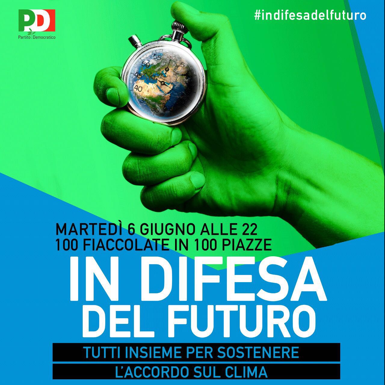 L’iniziativa, promossa dal Partito Democratico Nazionale, ha l’obiettivo di sensibilizzare tutti i cittadini sull’ importanza degli accordi sul clima da cui il Presidente degli Stati Uniti Donald Trump ha deciso di tirarsi indietro. Saranno 100 le piazze in tutta Italia dove sono state organizzate fiaccolate e momenti di incontro.