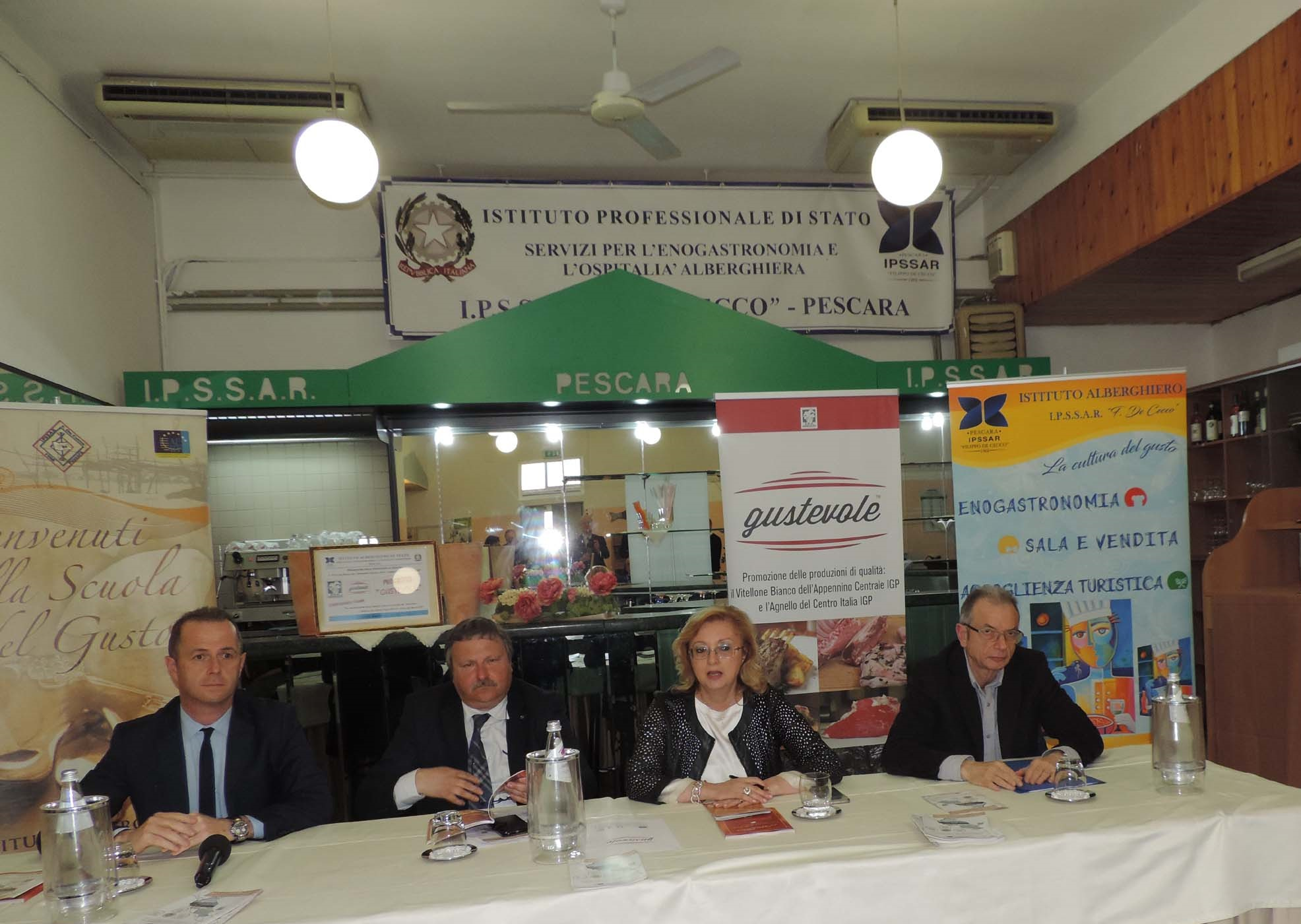 “Una collaborazione strutturata tra l’Istituto Alberghiero Ipssar ‘De Cecco’ e l’Associazione Regionale Allevatori d’Abruzzo per promuovere attività articolate da portare avanti nei prossimi mesi per favorire da un lato la conoscenza e la divulgazione corretta delle qualità della carne d’allevamento, a partire dal vitellone bianco e dall’agnello, che sono patrimonio della dieta mediterranea; dall’altro per sostenere la nuova immagine del cuoco professionista che ha un ruolo strategico fondamentale, sia sotto il profilo economico che sociale, nel farsi garante della qualità delle materie prime impiegate nei confronti dell’utente-consumatore. È quella che oggi andiamo a sugellare, con il coinvolgimento dei nostri studenti e dei nostri docenti-chef nel Progetto ‘Gustevole’”. Lo ha annunciato la dirigente scolastica dell’Istituto Alberghiero Ipssar ‘De Cecco’ Alessandra Di Pietro aprendo i lavori della Conferenza stampa organizzata nei Laboratori di Cucina e di Sala del plesso di via Tirino, alla presenza del Direttore di ARA Abruzzo Francesco Cortesi, del consigliere regionale Alberto Balducci e del Presidente della Provincia di Pescara Antonio Di Marco. Presenti tra il pubblico anche il questore di Pescara Francesco Misiti e il Presidente dell’Ail Abruzzo, l’avvocato Domenico Cappuccilli.