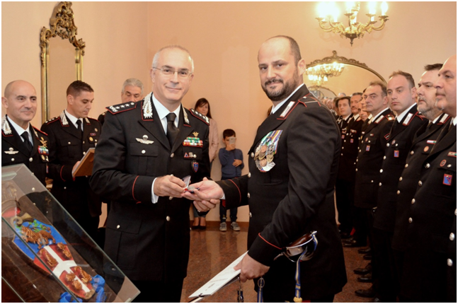 Nel corso della visita si è svolta la cerimonia di consegna delle onorificenze e delle “Medaglie Mauriziane al merito di 10 lustri di carriera militare”, alla presenza del Comandante della Legione Carabinieri Generale di Brigata Michele SIRIMARCO, dell’Associazione “Nastro Verde” che riunisce gli appartenenti alle Forze Armate Italiane e ai Corpi Armati dello Stato, in servizio ed in congedo, insigniti della Medaglia Mauriziana e di una folta rappresentanza dell’Associazione Nazionale Carabinieri in Congedo, della Rappresentanza Militare, degli Ufficiali dello Stato Maggiore e di numerosi familiari dei militari premiati. Durante la cerimonia il Generale NISTRI ha voluto porre l’accento sull’alto valore simbolico dei riconoscimenti militari concessi dall’Arma dei Carabinieri che vengono attribuiti al personale solo in occasione di eventi eccezionali in cui emerge il lodevole comportamento ed il particolare rendimento in servizio. La cerimonia ha avuto inizio con la consegna di una “Medaglia d’Argento al Valor Civile” al Maresciallo Davide d’Amico, effettivo alla Stazione di Chieti Scalo, all’epoca dei fatti in servizio a S. Elpidio a Mare dove, insieme ad un collega, aveva soccorso alcune persone che erano rimaste intrappolate all’interno delle proprie autovetture in panne in un sottopasso allagato. Numerosi anche gli Encomi concessi. E’ stato tributato un “Encomio Solenne Collettivo” al Nucleo Investigativo del Comando Provinciale CC di Pescara, ritirato dal Maggiore Massimiliano DI PIETRO, dal Maresciallo Maggiore Silvestro SCURTI e dall’Appuntato Scelto Antonio Felice BARONE, per aver debellato un’articolata associazione criminale dedita al traffico di stupefacenti, ed un “Encomio Semplice Collettivo” al Nucleo Operativo e Radiomobile della Compagnia di Sulmona, ritirato dal Maresciallo Maggiore Francesco MICCOLI, dal Maresciallo Capo Daniele LERZA e dall’Appuntato Scelto Duilio FEDERICO, per aver disarticolato un sodalizio criminale dedito allo spaccio di sostanze stupefacenti. Altri Encomi individuali sono stati tributati al Maresciallo Maggiore Umberto Massimo CICONE, Comandante della Stazione Carabinieri di Carsoli, per aver fornito un determinante contributo investigativo nel disarticolare un sodalizio criminale di matrice ‘ndranghetista dedito ad usura, estorsione ed allo impossessamento di beni culturali; al Ten. Maximiliano PAPALE, all’Appuntato Scelto Pierpaolo SALVI e all’Appuntato Gaetano DE RISIO, Comandante e addetti al Nucleo Operativo e Radiomobile della Compagnia di L’Aquila, per aver debellato un sodalizio criminale dedito alla commissione di furti e ricettazione di rame, nonché a furti presso gli sportelli bancomat realizzati con la tecnica del “cash trapping”; all’Appuntato Rocco D’ANIELLO, addetto alla Stazione di Castropignano che, con coraggiosa determinazione e generoso slancio, aiutato da due colleghi – il Maresciallo Ordinario Adriano PICARDI ed il Vice Brigadiere Gianluca SANTANGELO, Comandante e addetto dello stesso Comando Stazione ai quali per lo stesso fatto veniva tributato un Elogio – non esitava ad intervenire per soccorrere e salvare una donna in stato confusionale caduta in un pozzo, calandosi all’interno e trattenendola per le braccia per evitarne l’annegamento fino all’arrivo dei soccorsi ed al Maresciallo Maggiore Daniele LUCENTINI, Comandante del Nucleo Operativo e Radiomobile della Compagnia di Atessa, per aver fornito importante contributo ad una complessa, delicata e rischiosa attività investigativa nei confronti di un’associazione criminale di matrice islamista pronta a combattere in seno alle milizie terroristiche del Daesh. La cerimonia si è conclusa con la consegna dei diplomi per il conferimento della Medaglia Mauriziana al Luogotenente Roberto CURSOLI Comandante della Stazione di Villamagna, al Luogotenente Adriano DI FURIA Comandante della Stazione di Castelnuovo Vomano, al Luogotenente Fernando MORELLI Comandante del posto di Polizia di Frontiera della Stazione di Ortona, al Luogotenente Giovanni ROLANDO Comandante della Stazione di Montesilvano, al Maresciallo Maggiore Amedeo Antonio ARLOTTA Comandante della Stazione di Villetta Barrea, al Maresciallo Maggiore Adriano CARPENTIERI Capo Officina della Legione Carabinieri “Abruzzo e Molise”, al Maresciallo Maggiore Mario CARRACINO Comandante della Stazione di Campo di Giove e al Maresciallo Maggiore Andrea DI BRINDISI Comandante dell’Aliquota Radiomobile della Compagnia di Giulianova.