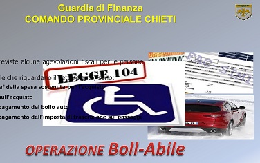 La Guardia di Finanza di Chieti, dopo una complessa ed articolata attività di analisi operativa, ha smascherato i c.d “furbetti” del bollo auto, soggetti che continuavano a beneficiare dell’esenzione sulla tassa automobilistica, prevista dalla legge 104/92, anche dopo il decesso del disabile.
