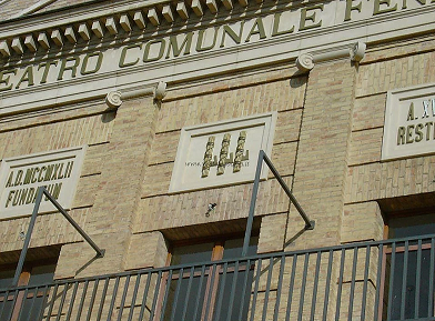 La Sovrintendenza abruzzese ha autorizzato l’eliminazione del manufatto perché non ha più di 50 anni e quindi non è sottoposta a tutela con le norme vigenti. I fasci erano stati sistemati nel 1997 al termine del restauro del teatro Fenaroli.