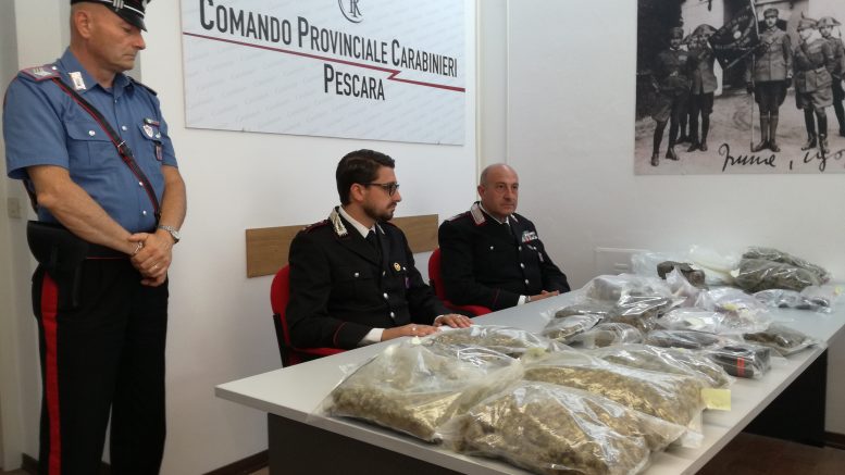 Nella sua abitazione i militari dell’Arma hanno rinvenuto in due valigie circa 13 chilogrammi di droga, per lo più marijuana, haschish e metanfetamina. Secondo quanto riferito stamani dal Tenente Antonio Di Dalmazi, i militari dell’Arma sono giunti al giovane incensurato grazie all’attività d’indagine intensificata nel periodo estivo nei luoghi della movida pescarese. Dagli appostamenti svolti è emerso che circa 5 6 giovani insospettabili ed incensurati hanno avuto contatti con alcuni soggetti riconducibili all’ambiente dello spaccio di droga. Dai pedinamenti è emerso uno strano via vai di giovani sotto l’abitazione del 29 enne situata nei pressi del Liceo Scientifico Da Vicni a Pescara Colli. Nel pomeriggio di ieri è stata disposta la perquisizione domiciliare. Nell’appartamento che il giovane disoccupato condivide con una compagna di 31 anni ritnuta estranea all’attività di spaccio, sono stati rinvenuti in camera da letto, un trolley, due borsoni di tela ed uno zainetto pieni di droga. In particolare oltre 9,5 Kg di marijuana, 2,5 Kg di hashish ed una ventina di grammi MDMA, una droga sintetica particolarmente devastante, lesiva pericolosa dal punto tossicologico. La droga del valore di circa 50 mila euro era destinata alla piazza locale.