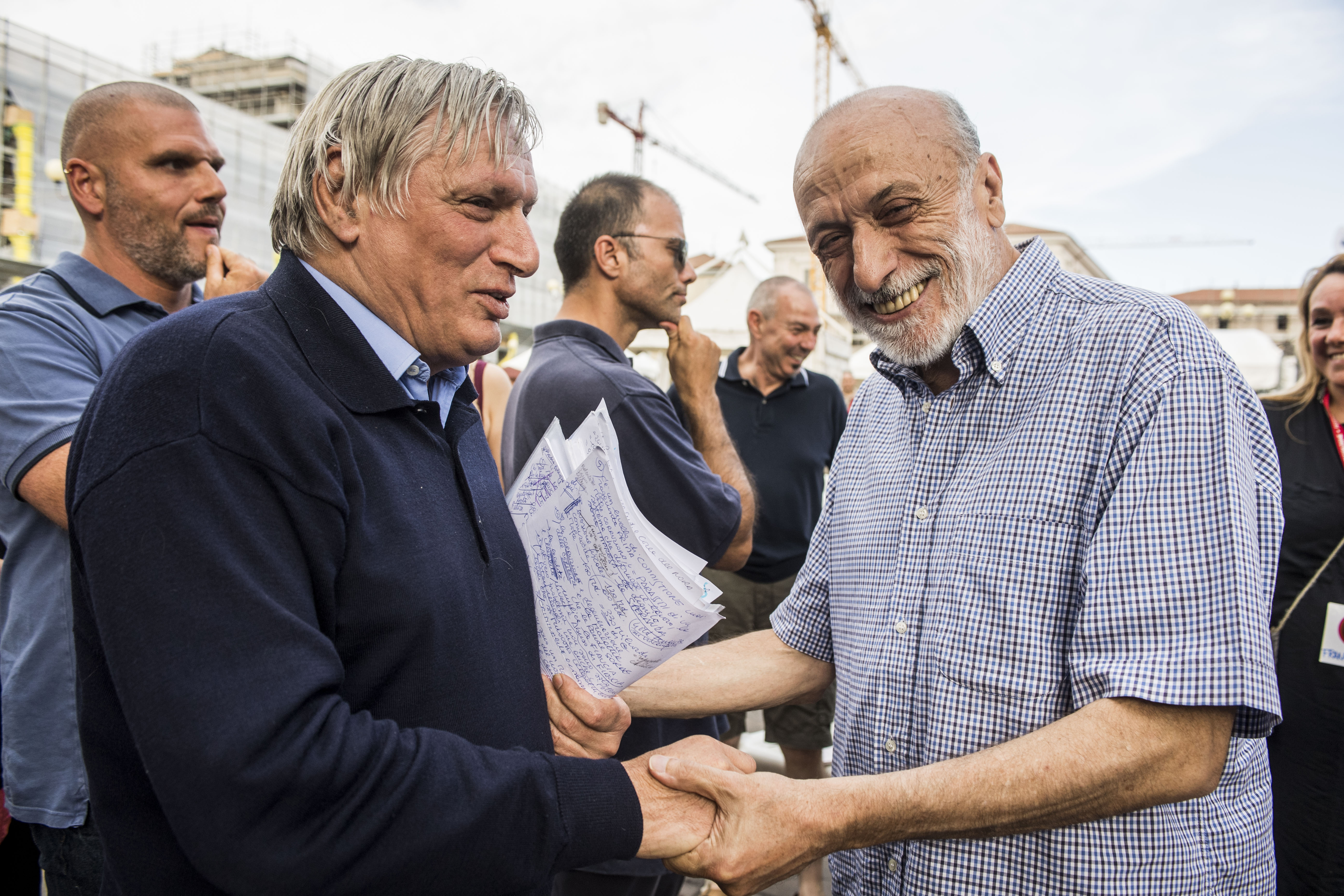 Gli aquilani con il terremoto hanno messo in atto quel fenomeno che è la parola chiave del Festival: la partecipazione, come ha ricordato il sindaco Massimo Cialente. Nel punto esatto in cui sorge il palco del Festival della partecipazione, ai piedi di piazza Duomo, c’era il tendone dell’assemblea cittadina. Smantellato non più di due anni fa. A chi ha vissuto gli anni del post-sisma non serve spiegare che cosa fosse. A chi non è dell’Aquila basti dire che era il quartier generale della comunità, uno scampolo di tenda lasciata dalla Protezione civile dove accadeva di tutto: dai concerti della fine dell’anno ai dibattiti sulla ricostruzione e sulle norme che si andavano formando nella stanze dei legislatori, solitamente lontane dalla gente. Gli aquilani con il terremoto hanno messo in atto quel fenomeno che è la parola chiave del Festival: la partecipazione, difesa a suon di proteste e carriole con cui venivano sfondati i confini della zona rossa di una città che si era deciso di tenere scollegata dai suoi abitanti “per motivi di sicurezza”.