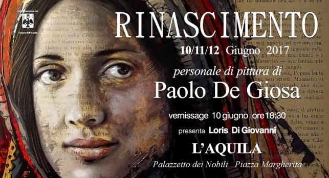 Il titolo è un’omaggio alla città e un pensiero al suo futuro: “Rinascimento”. Il vernissage della mostra, che si fregia del patrocinio del Comune, è previsto sabato 10 alle 18.30 con la presentazione del collezionista Loris Di Giovanni. Il pubblico aquilano potrà ammirare quadri di varie dimensioni, con i suoi noti e seduttivi, talora inquietanti, volti femminili per i quali De Giosa spazia dall’olio su tela alle particolari tecniche pittoriche su legni erosi dal mare, antichi fogli di giornale e, ultime ma riuscitissime sperimentazioni, su antiche carte giuridiche dell’Ottocento. Ad impreziosire la mostra poesie dedicate ad alcune sue celebri opere da autori abruzzesi.