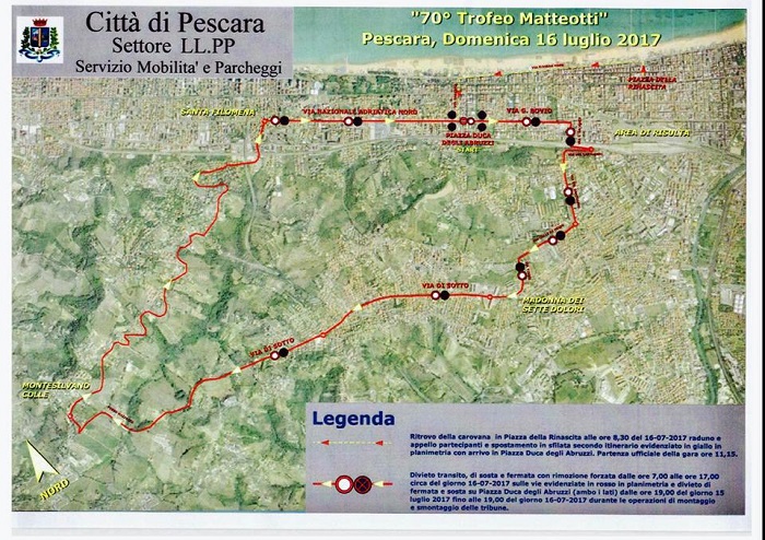 Oggi a Pescara la 70 esima edizione del Trofeo Matteotti, uno degli eventi ciclistici e storici più attesi da appassionati e non. Di seguito l’ordinanza con i divieti di transito e di sosta nelle zone interessate dalla gara.