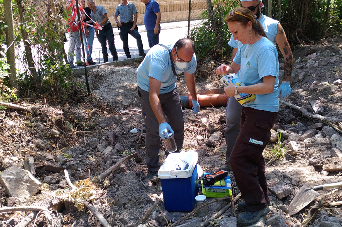 L’ARTA ha provveduto ad effettuare diversi campionamenti di materiali dai colori più svariati, dal vinaccia al grigio, resti evidenti delle passate lavorazioni industriali.