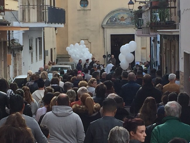 L’intera comunità di Cepagatti si é fermata per partecipare addolorata e nel più assoluto silenzio alla cerimonia funebre per il piccolo Ferdinando Di Rocco, il bimbo di 19 mesi azzannato mercoledì pomeriggio dal cane di famiglia nel cortile di casa. Il feretro, partito da Chieti, é giunto intorno alle 15.50 all’ingresso del paese. Da lì si é mosso il corteo guidato dalla piccola bara bianca accompagnata da palloncini bianchi, mentre alcuni familiari lasciavano cadere su di essa dei petali di fiori e tra la bara e la croce, ai lati diversi bambini con delle corone in mano . Dal viale principale si é poi giunti alla Chiesa di Santa Lucia dove sul sagrato sono stati posti altri palloncini bianchi, in sottofondo solo il rumore dei passi sulla strada. Una tragedia che ha colpito tutti qui a Cepagatti dove é stato indetto anche il lutto cittadino, il padre di Ferdinando, Manuel, sorretto da due amici e nascosto tra la folla, la madre per tutto il tragitto con la mano poggiata sulla piccola bara, la nonna, invece, é stata colta da un lieve malore. Sul fronte delle indagini proseguono gli accertamenti dei carabinieri su disposizione del magistrato Silvia Santoro, mentre il cane Giulia é ancora custodito nella gabbia del canile sanitario, ma, fortunatamente, non dovrebbe essere abbattuto.