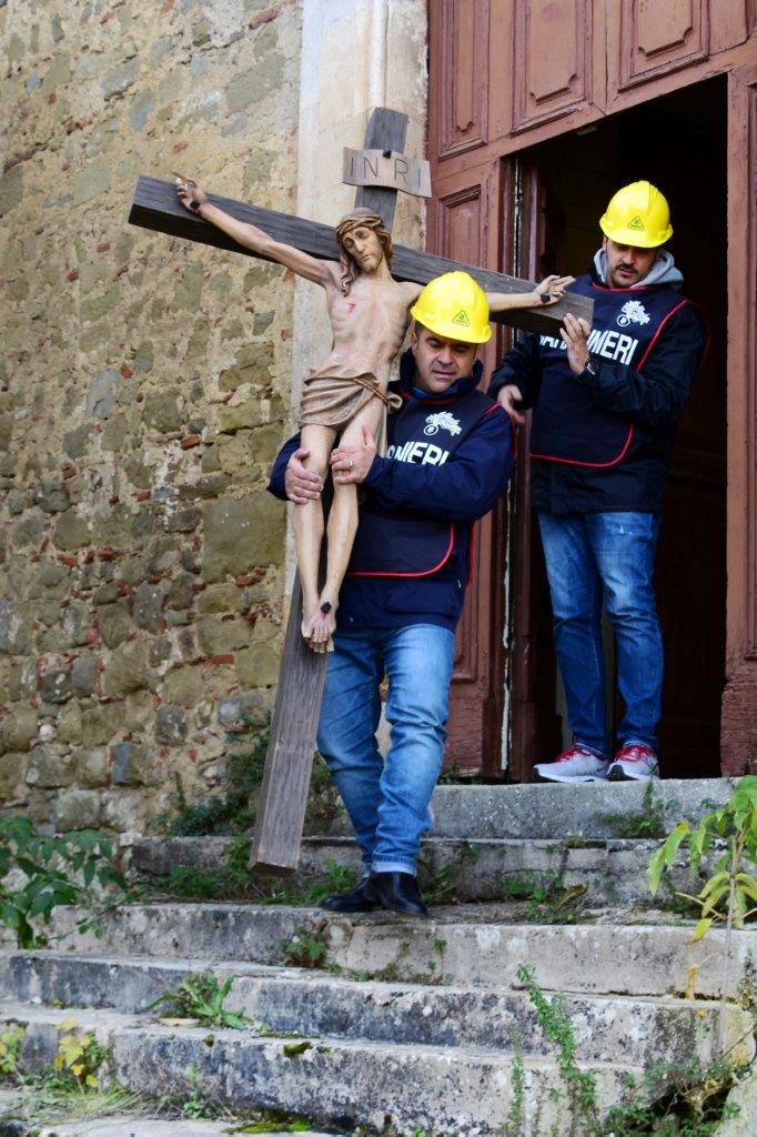 Alla presenza dei Carabinieri del Nucleo Tutela del Patrimonio culturale di Ancona, un funzionario storico dell’arte e altre due unità del Segretariato Regionale dei Beni culturali, coadiuvati da una squadra dei Vigili del Fuoco e da un gruppo di volontari di Legambiente (che ha messo a disposizione i mezzi di trasporto), hanno prelevato 101 opere tra tele, sculture, arredi sacri e paramenti, trasferiti presso il deposito dell’Arcidiocesi dell’Aquila. L’operazione si è resa necessaria anche per poter completare rapidamente l’intervento di messa in sicurezza delle due Chiese: Santa Maria Assunta a Montereale e Santa Lucia nell’omonima frazione. Un recupero di grande valore artistico e simbolico: le due comunità di fedeli sono, infatti, molto devoti alle due chiese fortemente lesionate dal sisma di Amatrice.