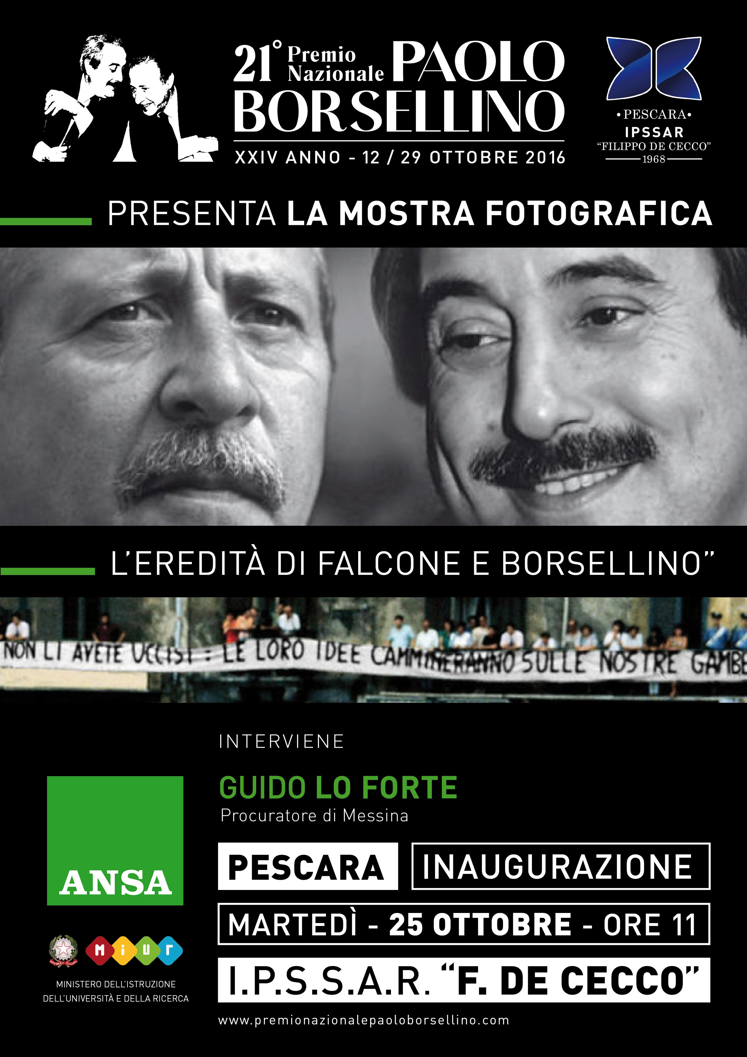Nell’ambito del XXI Premio Borsellino un nuovo appuntamento, dopo quello di sabato scorso, con una scuola di Pescara: all’alberghiero “De Cecco” inaugurata una mostra fotografica dedicata a Falcone e Borsellino.