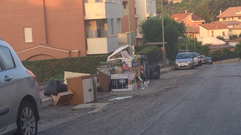Non è la prima volta che raccontiamo di strade pescaresi invase da mobili dismessi e sporcate da incivili senza scrupolo: qui siamo in zona colli, in una traversa piuttosto abitata e trafficata di via Di Sotto. Ciò che vedete è lì a due passi da auto in sosta e ingressi condominiali da sabato. Mobili forse di un vecchissimo salotto parcheggiati, nemmeno tanto in ordine per la verità, accanto ai cassonetti della differenziata. Come tutti ormai ben sanno ci sono dei giorni precisi della settimana, e altrettanti precisi orari, di raccolta dei cosiddetti rifiuti speciali: per intenderci, quelli che non entrano e non devono entrare nei singoli diversificati cassonetti. C’è un numero della Attiva, la società che ha in gestione la raccolta dei rifiuti in città, al quale poter chiedere gratuitamente la raccolta degli ingombranti: leggiamo testualmente su sito che “per ingombranti si intendono soprattutto i componenti di arredo, come mobilio, vecchie poltrone, divani, reti dei letti, materassi, ma anche vecchi televisori, frigoriferi, lavatrici, piccoli elettrodomestici“. Ma soprattutto nella stessa pagina del sito c’è la modalità di raccolta: dal lunedì al venerdì, dalle ore 9,00 alle ore 12,30 e nella fascia pomeridiana dalle ore 14.30 alle ore 17.30. Premesso che questo salottino è in strada da sabato pomeriggio, sperando non si tratti dell’ennesimo incivile di turno che non ha avvisato l’Attiva, assodato che gli attigui cassonetti vengono svuotati e che quindi al personale della Attiva non può non esser balzato agli occhi questo scempio, la domanda è una e una soltanto: che fine hanno fatto le annunciate telecamere anti incivili che il direttore di Attiva, da noi interpellato per un caso simile a quello dal quale abbiamo tratto spunto oggi per scrivere, aveva garantito addirittura in data 6 novembre 2015? Il direttore è cambiato qualche giorno fa, ma lo scempio di maleducati e sporcaccioni resta in molte strade di Pescara.