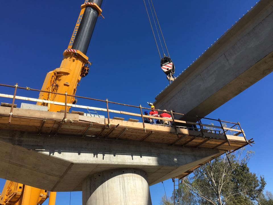 Posa della prima trave oggi del ponte sul Saline che collegherà Montesilvano a Città Sant’Angelo attraversando il fiume.