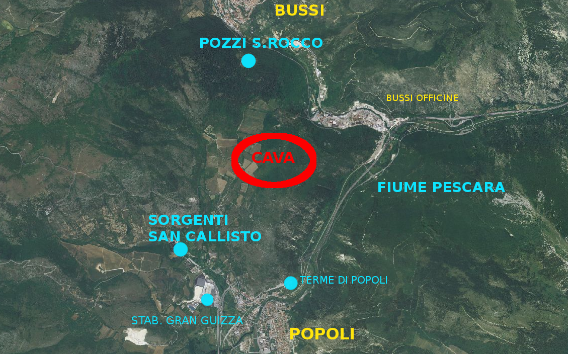 “La società UMT Service srl ha depositato- segnala e denuncia il forum ambientalista- al Comitato Valutazione d’Impatto Ambientale della Regione Abruzzo i documenti per la verifica di assoggettabilità a V.I.A. (V.A.) per una cava di importanti dimensioni, 398.000 mc, da estrarre in dieci anni di attività”. “L’area, come si rileva facilmente consultando la carta idrogeologica del Piano di Tutela delle Acque della Regione Abruzzo (guarda caso neanche mostrata negli elaborati depositati dall’azienda), è esattamente sopra uno degli acquiferi più importanti d’Italia. Infatti tutta la zona è punteggiata da sorgenti, tra le quali quelle fondamentali di San Callisto. Appena a monte, verso nord, vi sono i pozzi S. Rocco che danno l’acqua a Pescara dopo lo scandalo di Bussi, avendo sostituito dal 2007 i Pozzi S. Angelo risultati contaminati. Questo fa comprendere quanto sia importante preservare gli acquiferi per la vita stessa delle persone. Ad ovest e a sud ci sono importanti strutture produttive, le Terme di Popoli e la Gran Guizza”. Il Forum H2O ritiene che sia ora di dire basta a progetti che interessano una risorsa insostituibile e vulnerabile come l’acqua: ” l’attività di cava determina uno sfruttamento intensivo del territorio e questo avverrebbe in un contesto calcareo molto permeabile. Tutto quello che accade in superficie può avere un impatto enorme sulla qualità dell’acqua nel sottosuolo”. Quindi l’appello dell’H2O “a tutti, anche le comunità che vivono a valle, ad opporsi a questo progetto inviando entro il 25 febbraio 2017, data di scadenza dei termini, osservazioni alla regione Abruzzo”.