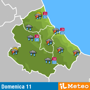 Nel teramano, giornata caratterizzata da annuvolamenti con temporali e schiarite, min 18°C, max 21°C. Entrando nel dettaglio, avremo fenomeni a carattere di rovescio o temporale al mattino, temporale e schiarite al pomeriggio, nubi sparse alla sera. Durante la giornata la temperatura massima verrà registrata alle ore 11 e sarà di 21°C, la minima di 18°C alle ore 5.