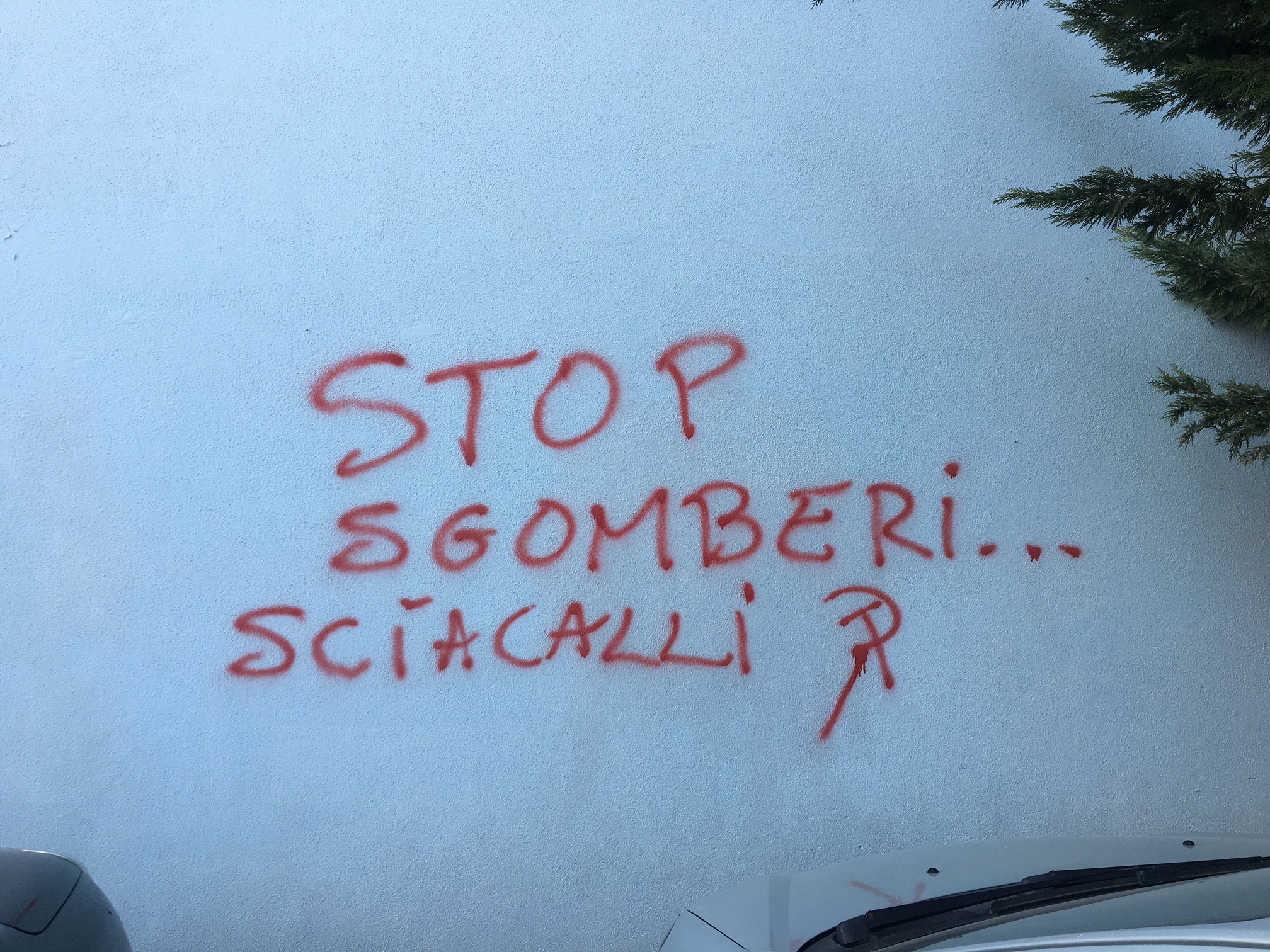 “Di per sé non è il muro imbrattato a lasciare esterrefatti – commenta l’Amministratore unico, l’architetto Armando Rampini – ma il sospetto che ci possa essere qualcuno convinto che siamo noi a volere che gli inquilini lascino le abitazioni loro assegnate. Vorremmo che fosse chiaro che non è l’Ater ad ordinare gli sgomberi ma le autorità competenti, in questo caso il Comune, dopo che il sopralluogo della Protezione civile ha classificato l’abitazione come inagibile o inutilizzabile. È una questione di sicurezza. Purtroppo rileviamo un rischio strumentalizzazione in questa vicenda che, invece, è trasparente e chiara e ci vede dalla parte degli inquilini ai quali, nessuno escluso, vogliamo offrire la speranza di un rapido rientro nelle abitazioni”. “Siamo impegnati – prosegue l’Amministratore, che l’altro ieri ha incontrato gli inquilini di Colleatterrato, tra i quartieri di Teramo con le abitazioni dell’Ater più colpite dal sisma – nelle complesse operazioni di verifica e proprio ieri abbiamo disposto l’avvio della procedura che ci consentirà, tramite l’individuazione di un unico soggetto attuatore, di accelerare l’esame degli alloggi sgomberati. Come ho ribadito agli inquilini, è possibile che per buona parte di quelli con classificazione B, i lavori possano iniziare prima ancora della scadenza del termine previsto per l’invio della documentazione all’ufficio per la ricostruzione, e quindi, presumibilmente, già tra qualche mese. Questo sarà possibile grazie alla valutazione speditiva che abbiamo appena autorizzato”.