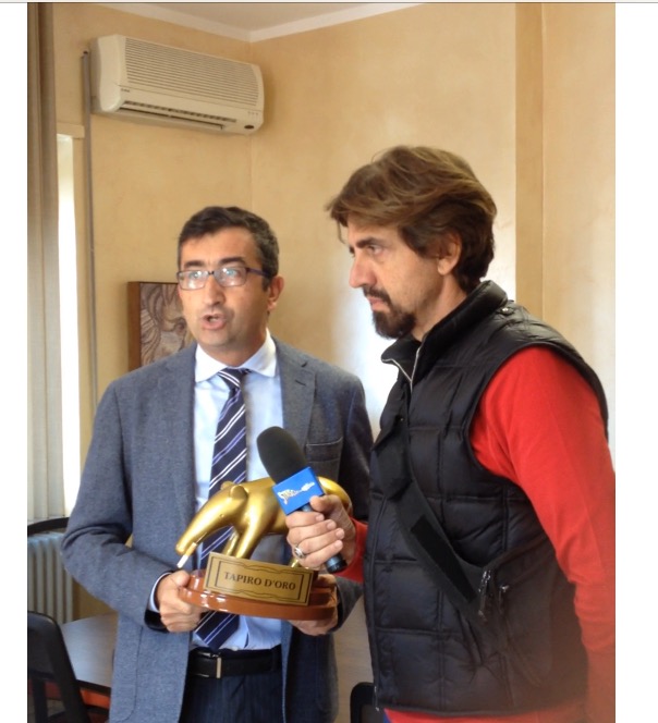 La troupe di “Striscia la Notizia”, con a capo Valerio Staffelli, ha consegnato un Tapiro d’oro al dg della ASL di Teramo, Roberto Fagnano, per la vicenda dei parcheggi per i disabili occupati dai dipendenti della Asl.