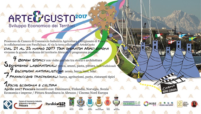 L’evento è ideato e curato da Parallelo42 e promosso dalla Camera di Commercio di Pescara. E’ nelle parole del presidente dell’ente camerale Daniele Becci che si coglie a pieno lo spirito che ha alimentato e guidato l’organizzazione della terza edizione di ” Arte e Gusto” evento itinerante in diversi comuni della provincia di Pescara per promuoverne territorio, tipicità, arte e cucina. Alla conferenza stampa di presentazione, questa mattina a Pescara, coinvolti alcuni dei Comuni che saranno anima e scenario dell’iniziativa: Spoltore, Città Sant’Angelo e Manoppello hanno anticipato tour e degustazioni che certamente vedranno protagonisti gli imprenditori del posto. Coinvolta per l’edizione 2017 di ” Arte e Gusto” una delegazione di tour operator e giornalisti provenienti da Finlandia, Svezia, Danimarca e Norvegia. Sembrano, infatti, specie i paesi del nord Europa quelli maggiormente interessati a conoscere la nostra regione, la provincia di Pescara e le aziende di riferimento con le quali entreranno in contatto anche commerciale grazie ad appositi B2B.