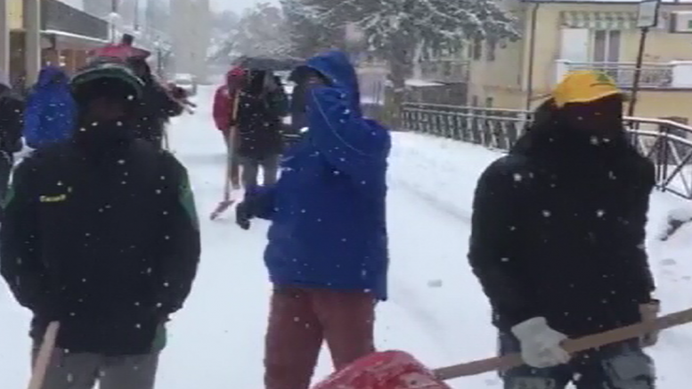 A dare una mano per fronteggiare disagi ed emergenza, a Roccamontepiano sono anche i migranti: oggi, pala in mano, i richiedenti asilo del centro Matrix hanno spalato la neve accumulata lungo le vie del centro.