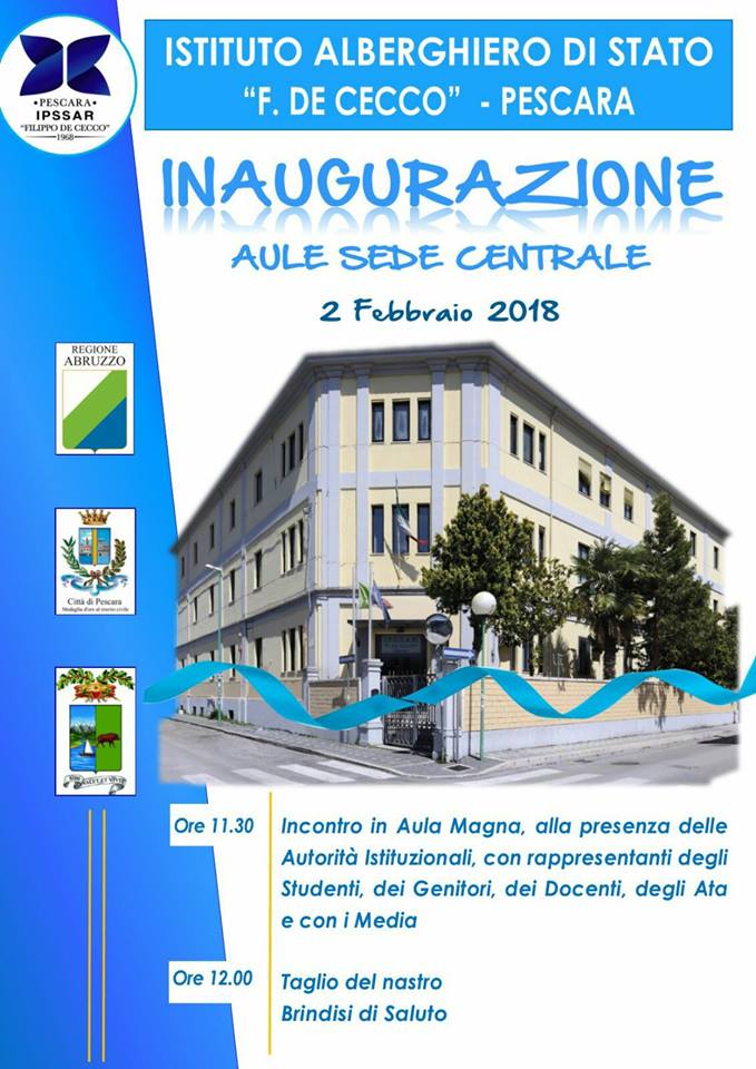 Oggi l’inaugurazione dei piani secondo e terzo dell’edificio centrale dell’Istituto Alberghiero “De Cecco”, in via dei Sabini.