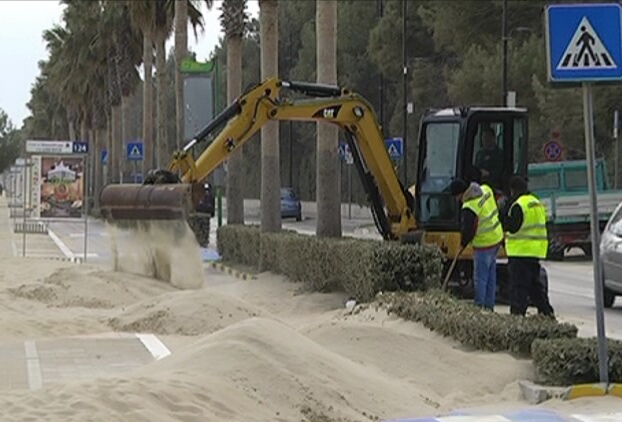 Le dune di sabbia, accumulate dalle forti raffiche di vento dei giorni scorsi, creano forti disagi a pedoni e ciclisti. A Montesilvano l’Amministrazione comunale è corsa subito ai ripari facendo intervenire delle squadre di operai che con l’ausilio di mezzi meccanici stanno provvedendo a rimuovere i cumuli di sabbia.