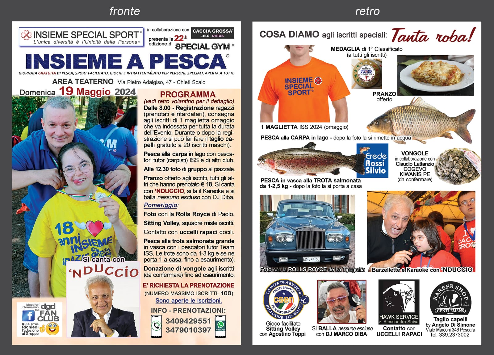 Torna l’appuntamento storico con “Insieme a pesca”, domenica 19 maggio presso l’Area Teaterno di Chieti Scalo, organizzata da “Insieme Special Sport Odv” in collaborazione con “Caccia Grossa Onlus” e aperta a tutti i ragazzi diversamente abili.