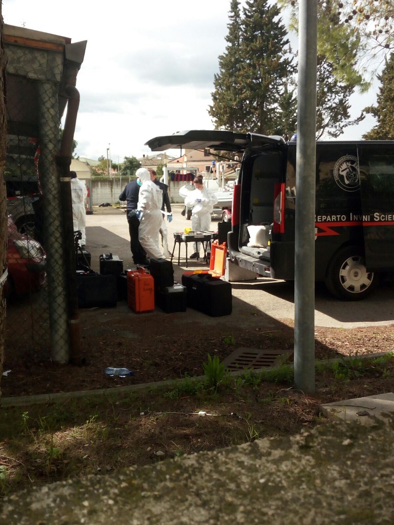 Di seguito alcune immagini degli uomini del reparto investigazioni scientifiche al lavoro nella caserma dei carabinieri di Rancitelli.
