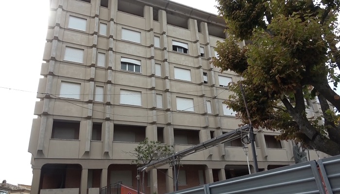 In piazza San Camillo de Lellis, la cerimonia di avvio dei lavori di demolizione dell’ex palazzo Caracciolo, una presenza ingombrante che da oltre 50 anni caratterizza il centro storico