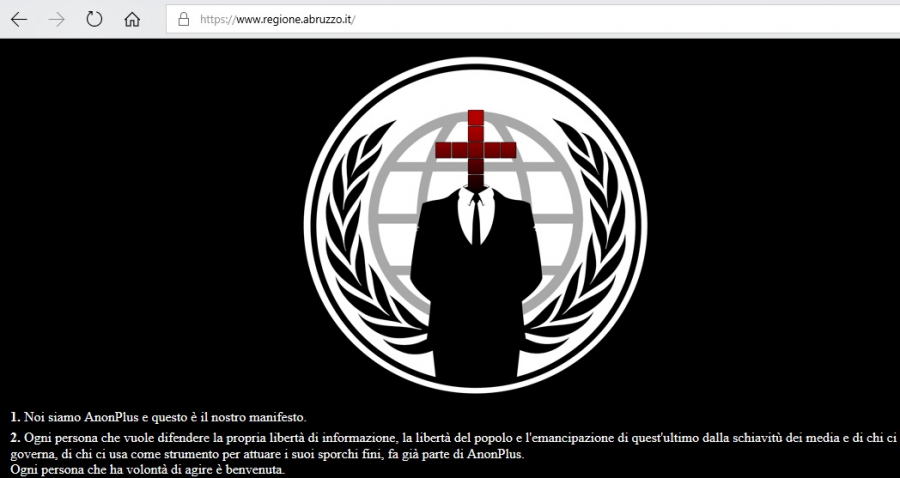 Hackerato in serata il sito istituzionale della Regione Abruzzo. Sulla home page, è stato pubblicato il manifesto di AnonPlus.