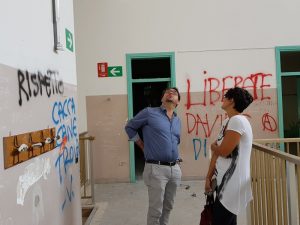 Quindi si provvederà ad approntare l’intervento all’interno della ex scuola, con la rimozione della quantità di detriti, vetri, rifiuti ed altro di cui gli ambienti sono invasi.