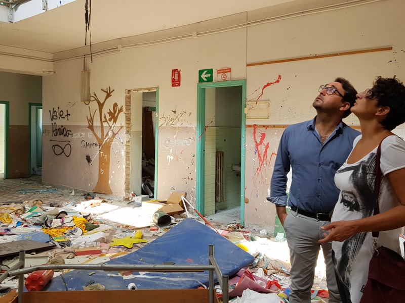 Quindi si provvederà ad approntare l’intervento all’interno della ex scuola, con la rimozione della quantità di detriti, vetri, rifiuti ed altro di cui gli ambienti sono invasi.