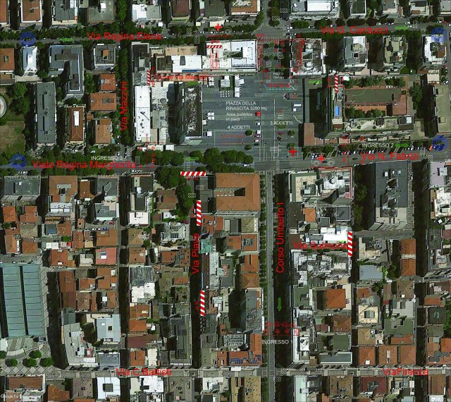 • Divieto di sosta e di fermata con rimozione forzata su entrambi i lati di viale Regina Elena nel tratto compreso tra Corso Umberto I e via De Amicis;