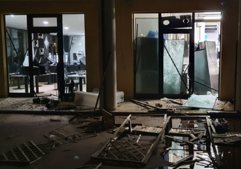 A provocare l’ esplosione intorno alle 4 della scorsa notte a Roseto un ordigno rudimentale. La potenza della dell’ esplosione ha devastato i locali della pizzeria Anima Concept Pizza nella zona del Borsacchio. Ingenti i danni. Secondo quanto si è appreso si tratterebbe di un atto doloso. Al vaglio dei Carabinieri, coordinati dal tenente colonnello Luigi Delle Grazie, le immagini delle telecamere di sorveglianza. Si cerca di capire la dinamica di quanto accaduto. L’ordigno sarebbe stato posizionato davanti i locali della cucina. La potente deflagrazione ha mandato in frantumi le due vetrine della pizzeria e danneggiato gli arredi interni. Un frigorifero è stato sbalzato di alcuni metri. Danni anche nell’appartamento situato al primo piano dello stabile. Non si esclude alcuna pista compresa quella del racket.