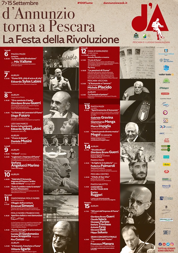 Al via oggi la settimana che la sua città natale, Pescara, dedica a Gabriele d’Annunzio e al centenario della impresa di Fiume.