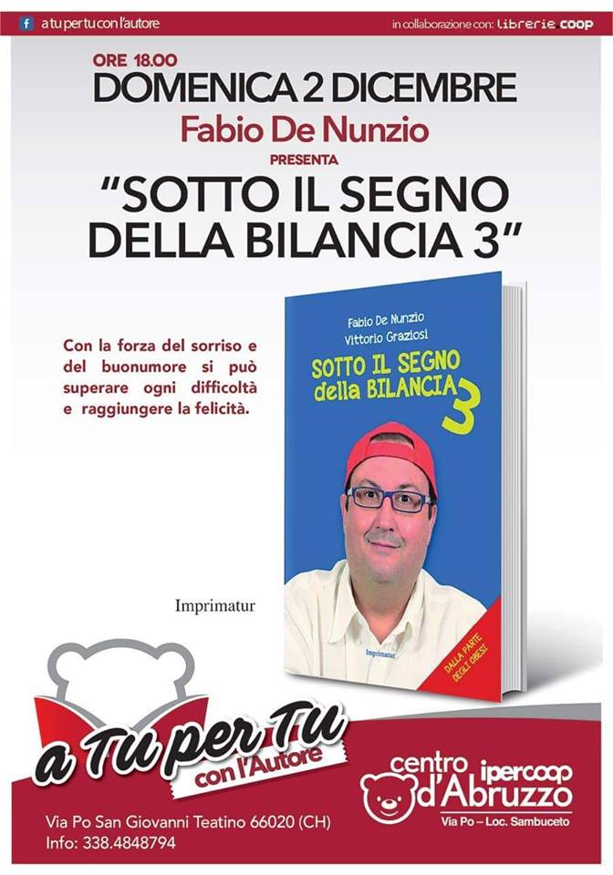 Dopo gli affollati incontri precedenti, un’altra proposta di lettura al Centro d’Abruzzo di Sambuceto: domenica 2 dicembre alla Libreria Coop arriva Fabio De Nunzio, ex inviato di Striscia la Notizia, noto come “il buon Fabio”.
