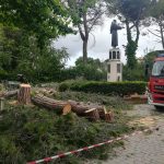 Due alberi pericolanti, il cui equilibrio era reso ulteriormente instabile dalle raffiche di vento, sono stati tagliati e rimossi a scopo precauzionale, per evitare che un eventuale sradicamento improvviso causasse danni a persone o veicoli.