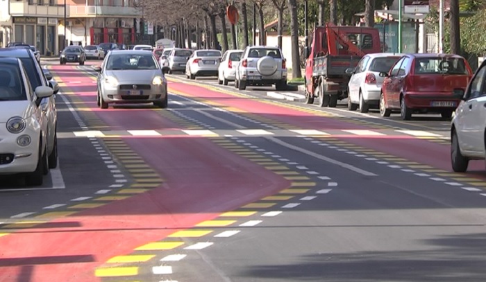 A Pescara è polemica per la pista ciclabile “arlecchino” realizzata dall’Amministrazione Comunale in via della Pineta, nel mezzo della carreggiata.