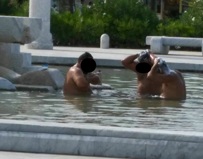Si fanno lo shampoo nella Nave di Cascella, la foto diventa “virale” sul Web tra incredulità, polemiche e ironia.