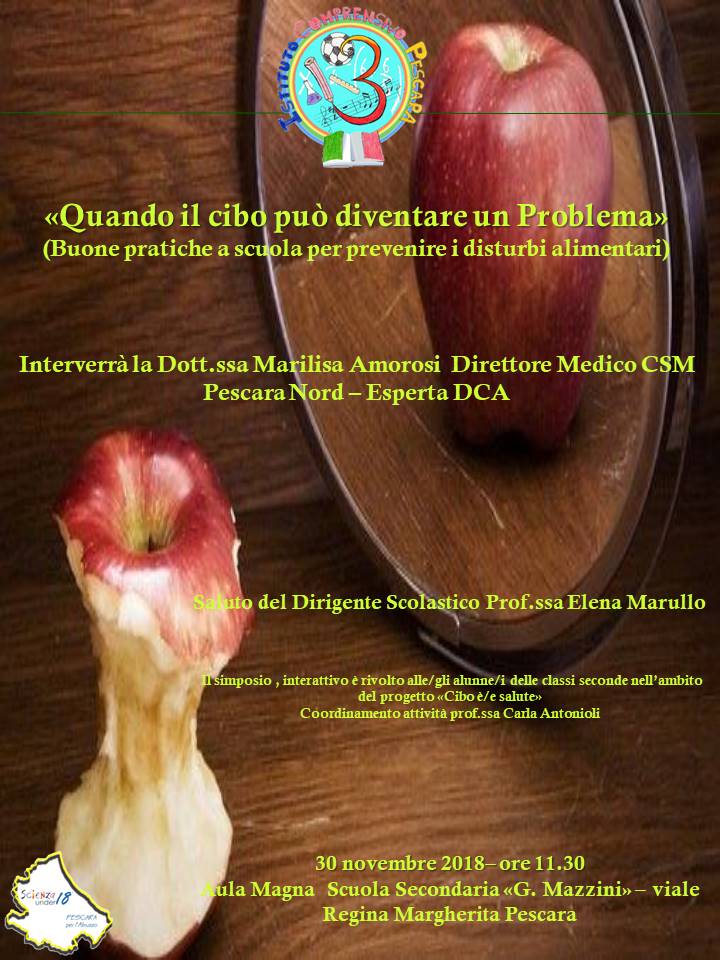 Si terrà il 30 novembre, a Pescara, il simposio “Quando il cibo può diventare un problema”, dedicato all’alimentazione e inserito in un progetto educativo della scuola Mazzini.