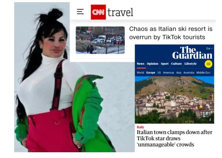 Tutto partì ( in tempi non sospetti) dalla celeberrima battuta di Checco Zalone nella pellicola “Quo Vado?”: “Mamma al Circolo Polare Artico fa freddissimo, più di Roccaraso ma’, sì di più!”, quanto mai profetico allora, il film diventa realtà con una sceneggiatura perfetta fra il tragicomico. Per vivere con ironia la situazione che si è venuta a creare a Roccaraso la settimana scorsa, si può digitare la parola su uno dei motori di ricerca e una montagna (è il caso di dire) di risultati on line spuntano fuori. Si va dal detonatore dei tiktoker, in particolare della napoletana Rita De Crescenzo e dei suoi video, l’influencer più ricercata dai media, a partire dalla intervista sulle pagine del quotidiano il Centro dei colleghi Daniele Cristofani e Erika Gambino, fino al TgUno, ai dibattiti sulle reti nazionali. Lo striscione all’Olimpico di ieri durante la partita Roma Napoli con lo sfottò: “Solidarietà alle popolazioni di Roccaraso”, l’inossidabile Gianni Morandi di corsa con lo sfondo del cartello d’ingresso sulla pagina dell’Abruzzese Fuori Sede, i residenti del paese che si preparano al week end murando porte e finestre e i ristoratori speranzosi in vista di in vista di una possibile “invasione”. Insomma siamo sommersi più che di neve, di una popolarità, volenti o nolenti che ci porta anche all’estero, il prestigioso The Guardian titola: “La città italiana chiude dopo che la star di TikTok attira folle ingestibili” e la Cnn Travel: “Caos perché la stazione sciistica italiana è invasa dai turisti di TikTok”. Ovviamente si viaggia sul filo dell’ironia ben vengano i turisti campani nel rispetto reciproco. E qualcuno rimembra i vecchi cinepanettoni?… Prossima stazione (sciistica) Ovindoli? Tornando a Checco Zalone, ricordate quando l’attore pugliese rimase bloccato con la sua navetta proprio a Roccaraso mentre cercava di raggiungere le piste da sci e fu “salvato” proprio dal sindaco Di Donato? No, non era un film ma ora potrebbe diventarlo Checco!