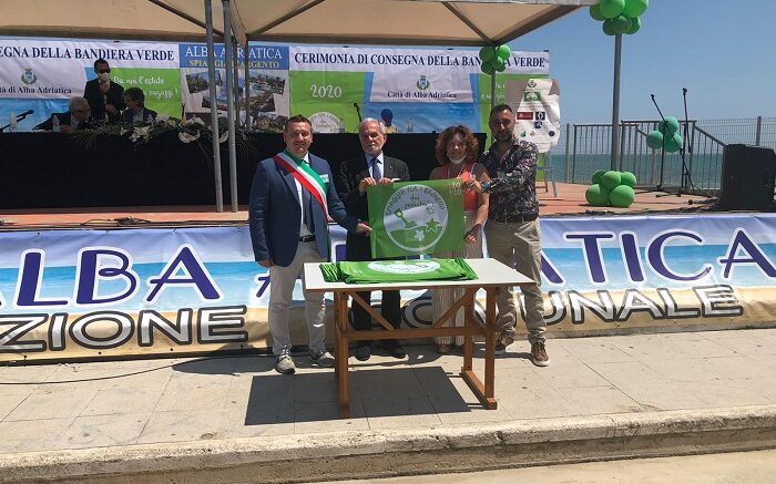 La cerimonia di consegna a 50 sei 144 sindaci di altrettanti Comuni assegnatari del prestigioso vessillo di tutta Italia è avventa ad Alba Adriatica. Per il Comune di Silvi c’era il sindaco Andrea Scordella al quale il presidente promotore dell’iniziativa, il pediatra Italo Frentani, ha consegnato la bandiera verde.
