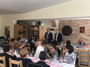 La giornata di lunedì è stata dedicata agli operatori professionali, con la visita ai vigneti e la tavola rotonda sul tema centrale dell’iniziativa “Piccole Dop in grandi carte dei vini”: dopo i saluti del sindaco di Tollo Angelo Radica, del primo presidente del Consorzio Tullum Dop Giancarlo Di Ruscio e dell’attuale presidente Tonino Verna, nonché del presidente del Consorzio Vini d’Abruzzo Valentino Di Campli, è stata la vota del panel di esperti composto Andrea Terraneo presidente dell’Associazione delle enoteche italiane, del sommelier Paolo Lauciani e del direttore commerciale di Feudo Antico Andrea Di Fabio che hanno ripercorso i dieci anni della Dop e hanno fatto il punto sulle strategie che consentono di guardare al futuro della più piccola denominazione italiana.