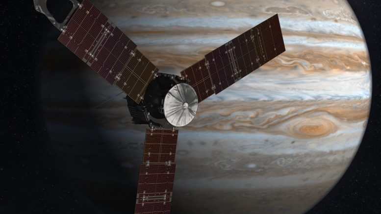 La sonda della NASA, partita il 5 Agosto 2011 da Cape Canaveral in Florida, dopo aver percorso circa 2.8 milioni di km, in questi giorni si è posizionata con successo nell’orbita ellittica di lavoro, ed è quindi pronta ad iniziare la sua missione. Molti sono gli esperimenti che dovrà portare a termine, tra cui l’analisi della composizione gassosa dell’atmosfera di Giove, la sua temperatura, la misura del suo campo magnetico, la presenza di particelle (ioni ed elettroni) a vari livelli di energia, lo studio di onde a frequenze radio, visibile ed ultravioletto, etc.
