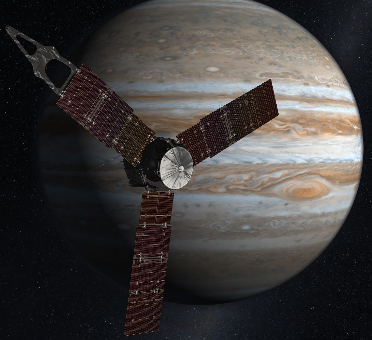 La sonda della NASA, partita il 5 Agosto 2011 da Cape Canaveral in Florida, dopo aver percorso circa 2.8 milioni di km, in questi giorni si è posizionata con successo nell’orbita ellittica di lavoro, ed è quindi pronta ad iniziare la sua missione. Molti sono gli esperimenti che dovrà portare a termine, tra cui l’analisi della composizione gassosa dell’atmosfera di Giove, la sua temperatura, la misura del suo campo magnetico, la presenza di particelle (ioni ed elettroni) a vari livelli di energia, lo studio di onde a frequenze radio, visibile ed ultravioletto, etc.