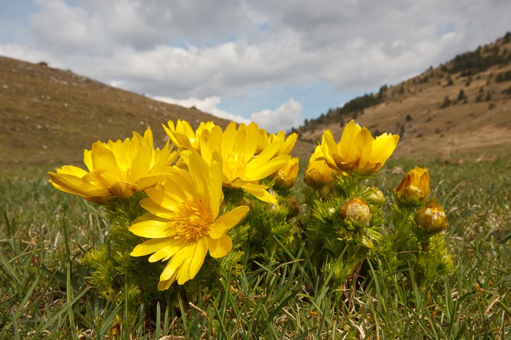 Pochi giorni fa, nel corso di un’escursione del CAI, il socio di Appennino Ecosistema Luciano Del Sordo ha scoperto una nuova piccola popolazione della rarissima e bellissima specie vegetale Adonis vernalis (adonide primaverile, della famiglia delle Ranunculaceae), finora sconosciuta per l’intero territorio del Parco Regionale Sirente Velino e le cui sole piccolissime popolazioni italiane si trovano ad oltre 10 km di distanza nel territorio del Parco Nazionale del Gran Sasso e Monti della Laga. La specie, ritenuta del tutto estinta in Italia fino al 1997, è stata poi rinvenuta in sette piccoli popolamenti, tutti localizzati alle pendici meridionali del Gran Sasso. Nell’Europa Occidentale, è presente solo in Austria ed in Francia, mentre è ritenuta estinta nei Paesi Bassi.