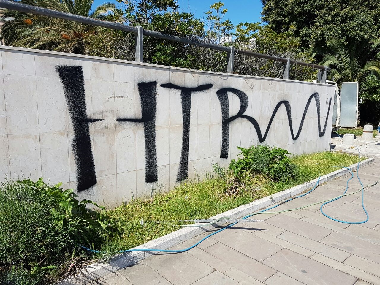 Pescara, il Comune dichiara guerra ai vandali. Muri imbrattati, scritte selvagge, vandali scatenati in città. Il comune interviene e ripulisce il monumento di Piazza Alessandrini ed il muro del museo Colonna. L’Assessore comunale Marchegiani. ” la lotta alle scritte che deturpano la città è quotidiana e non si fermerà”. (Le Foto)